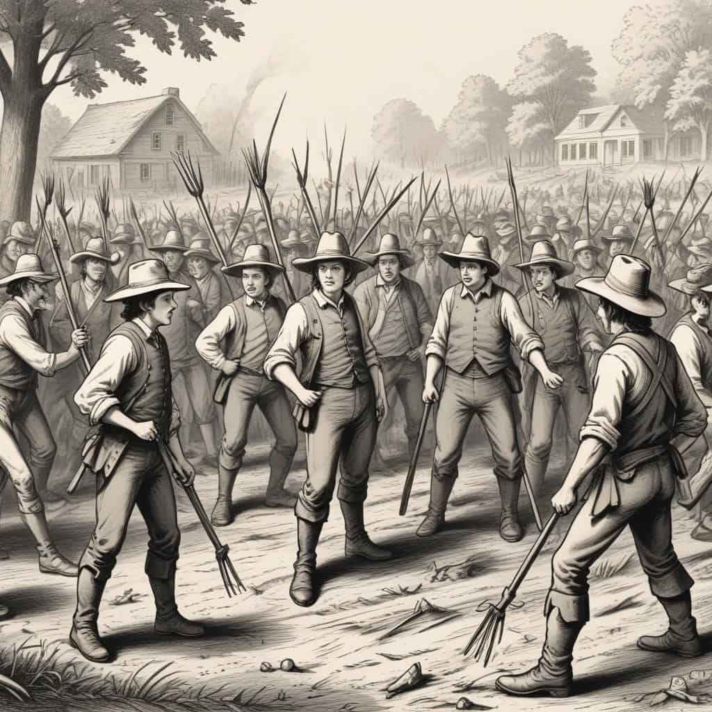 - An armed uprising in Massachusetts during 1786 and 1787 led by farmers and Revolutionary War veterans who were protesting against high taxes and debt