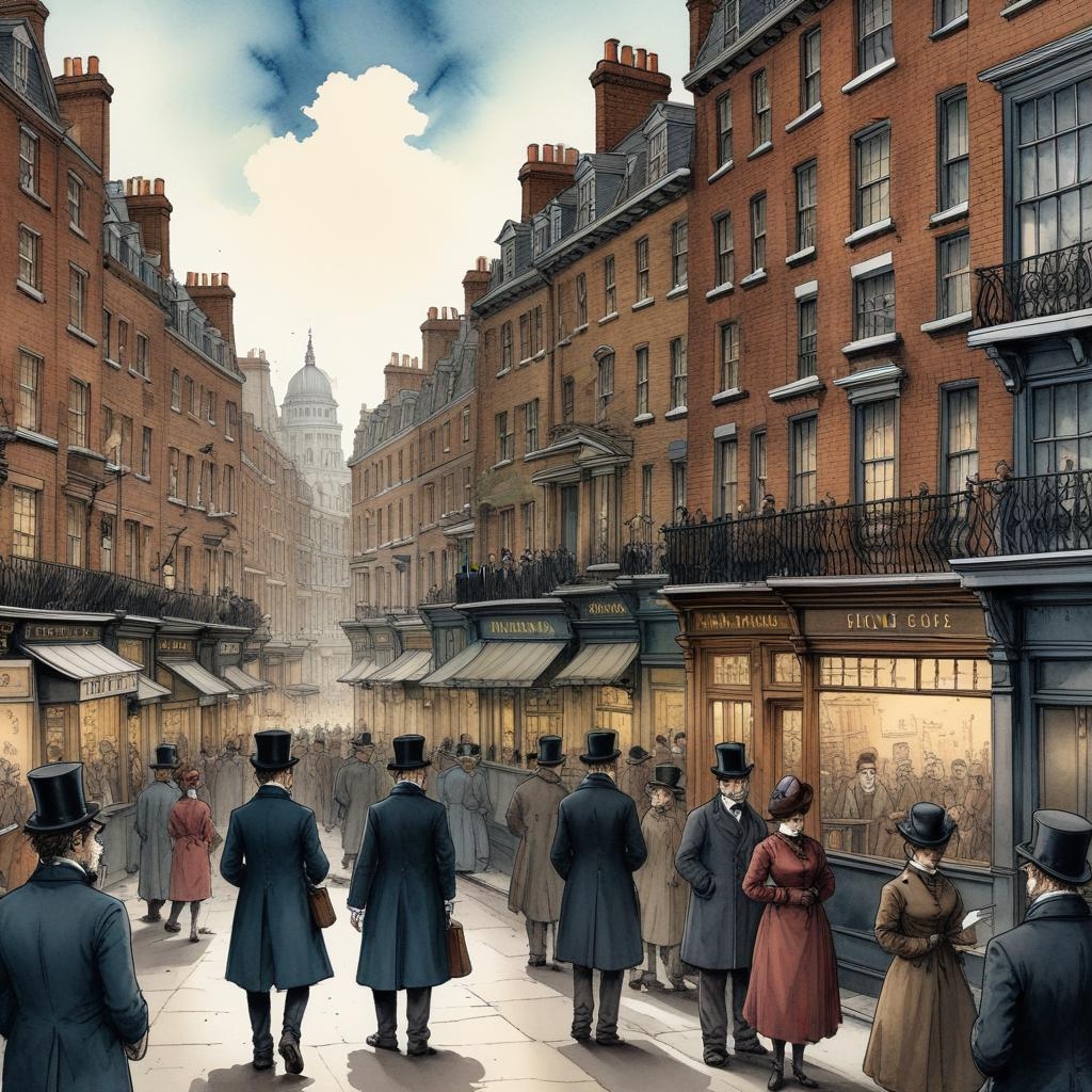 - - The characters interact in various settings, including London and the countryside.