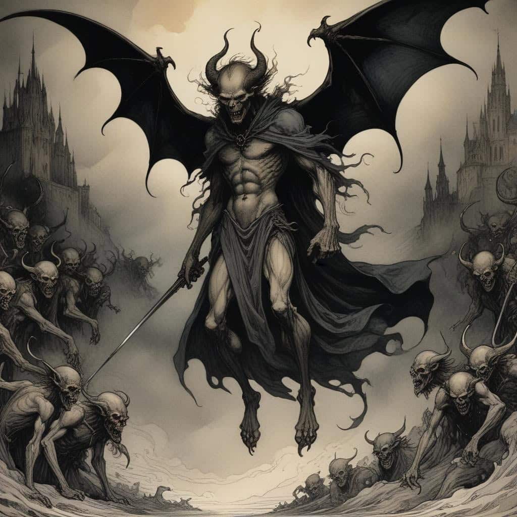 - The malevolent presence of demons is felt throughout the novel.