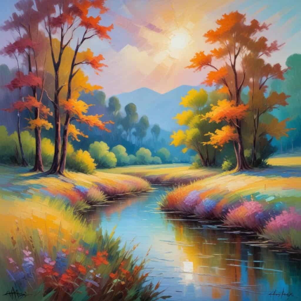 Vivid colors and complementary contrasts are used to evoke emotional responses and capture fleeting moments.